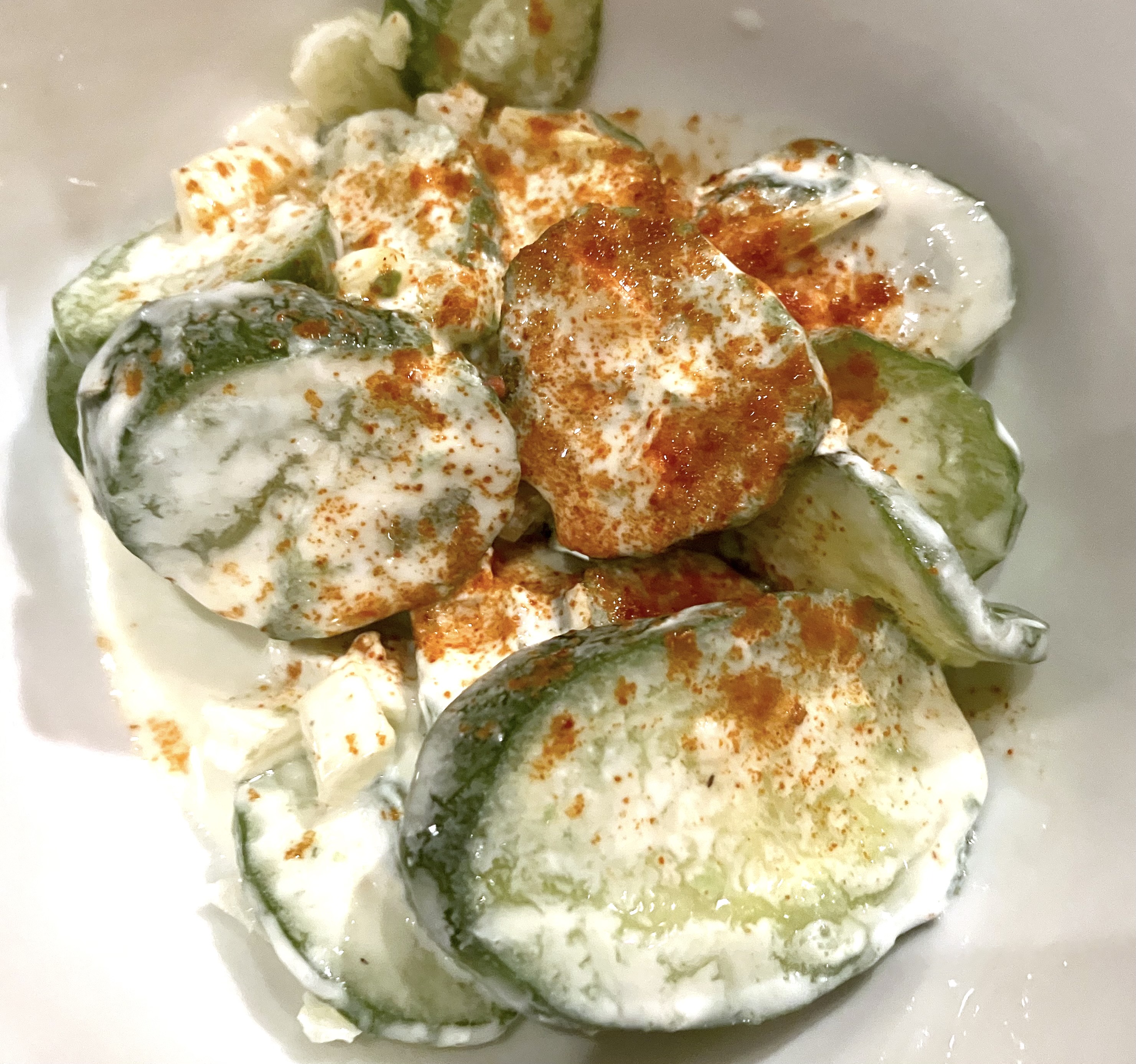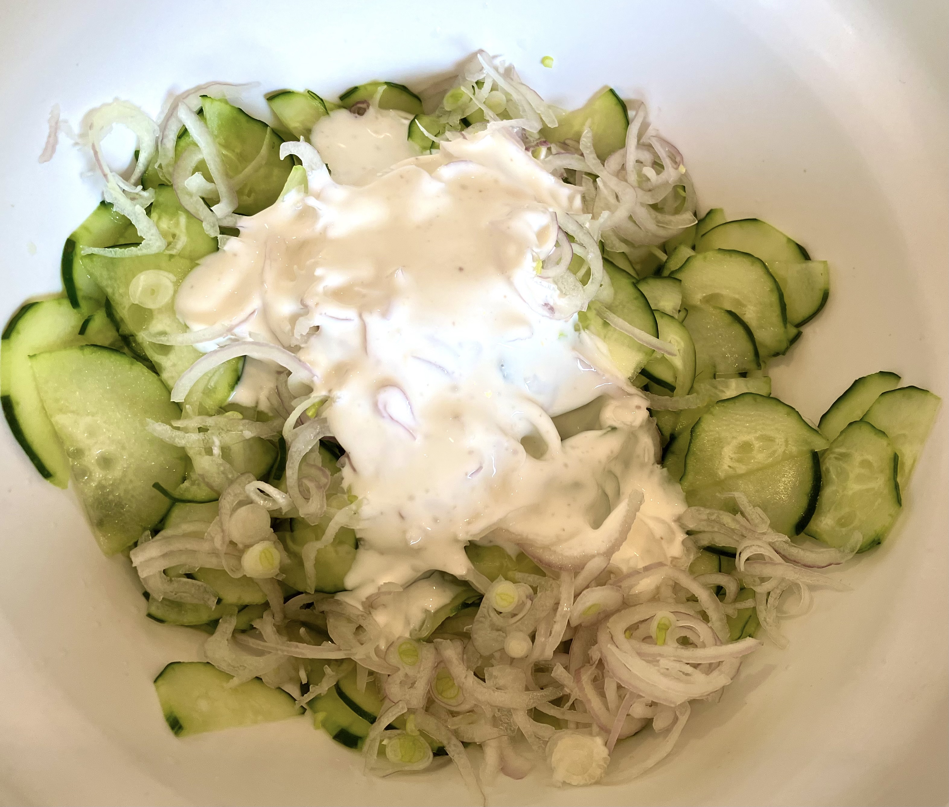Sour Cream or Greek Style Yogurt + Cukes + Vinegar Wed in a Simple Salad