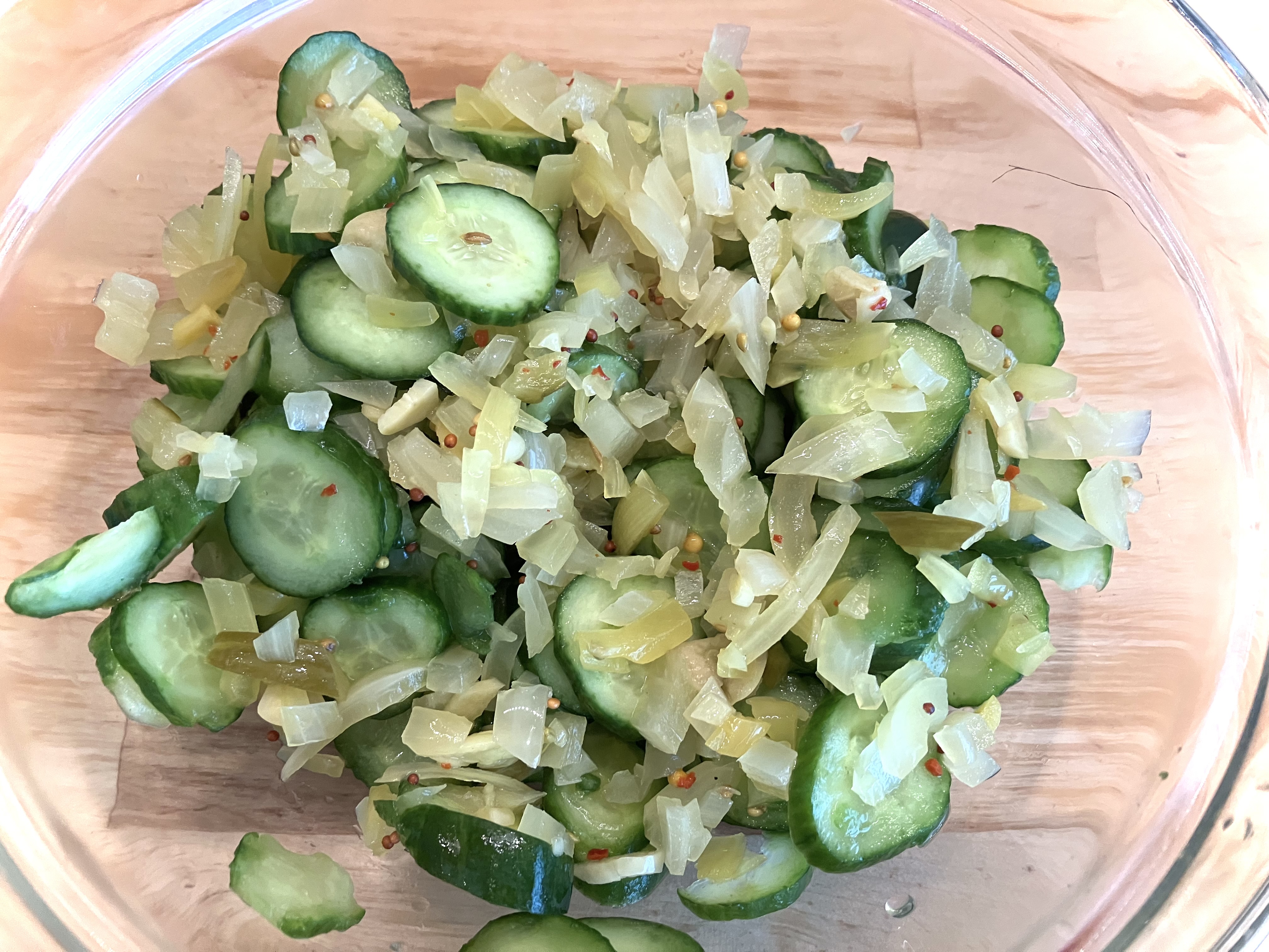 4. Toss with the cucumbers and refrigerate; flavors will improve over a couple hours
