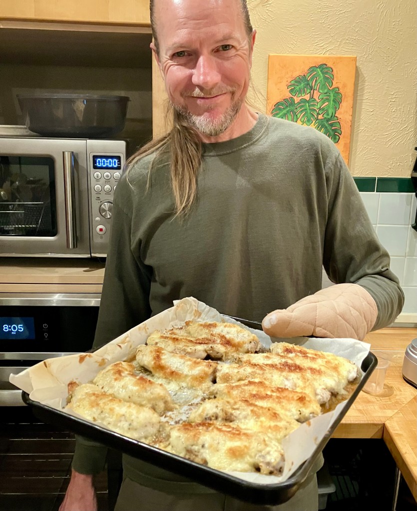 I gifted a pan for the holidays. Everything was ready to pop into the oven and off it went in an open one-horse sleigh.