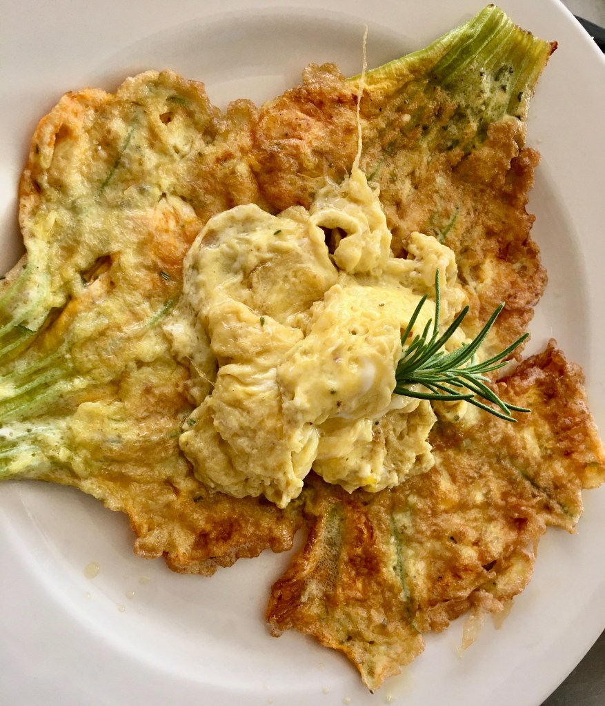 The esteemed cookbook author-restauranteur Yotam Ottolenghi waxed poetic about being served squash blossoms for breakfast as a child. Now I understand! This version is but eggs, parmesan, and olive oil. The results yield a lovely omelet-like dish also great as a side to any meal.