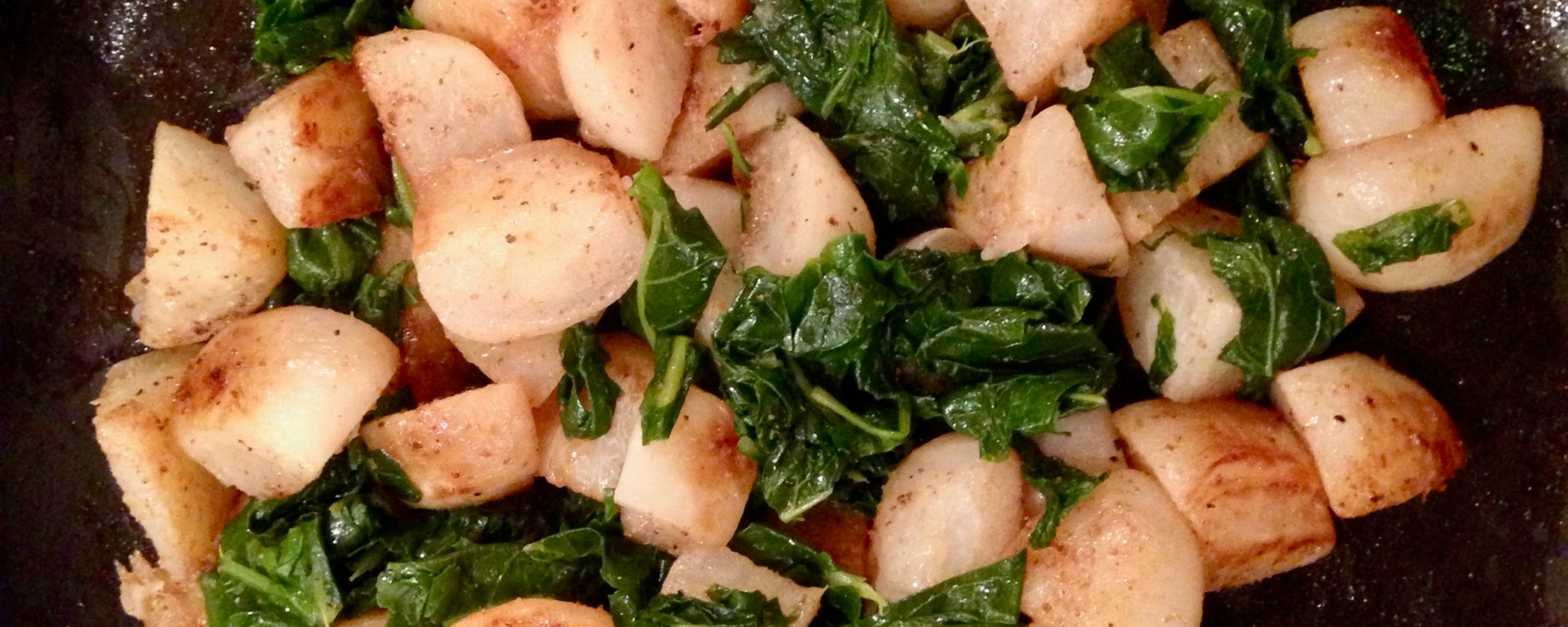 Turnips are earthy globes of mild pungency. We have turned away from them with our modern love of sweets & sours & savories. Yet a bowl of buttered turnips will be at the center of comfort. Trust me. When you see a bunch sitting at the green grocer, try both these dishes.
