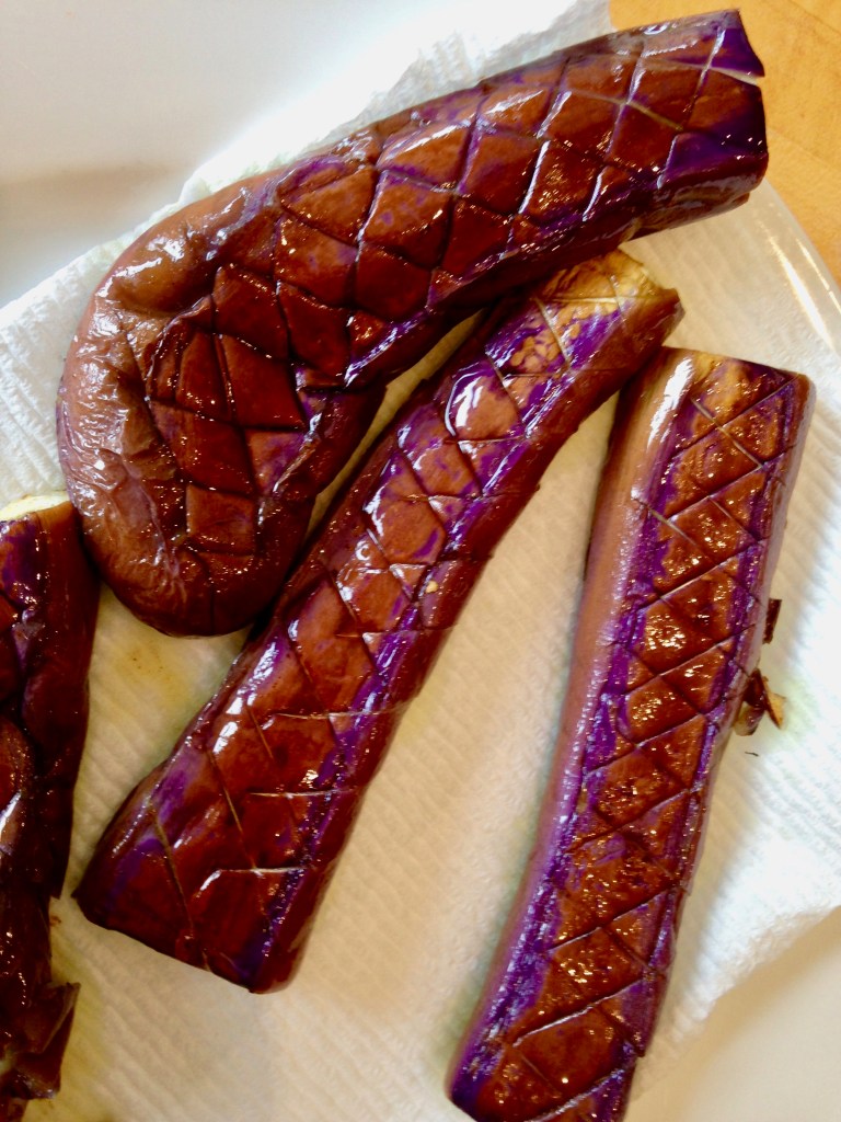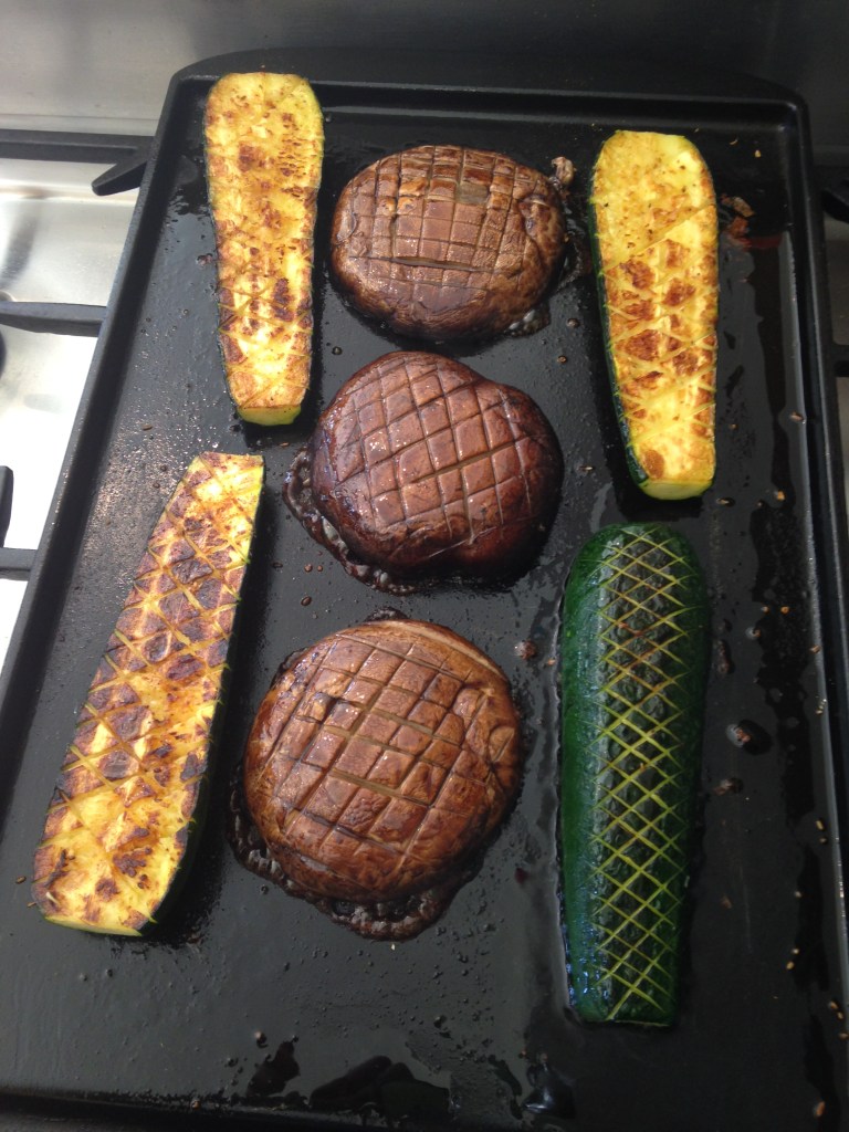 Developing a new cooking method gets me pumped. There was this eureka! moment when I prepped and cooked summer squash with this new idea. Traditionally, squash, eggplant, and portobello mushrooms are fried to become limp, slippery sides.