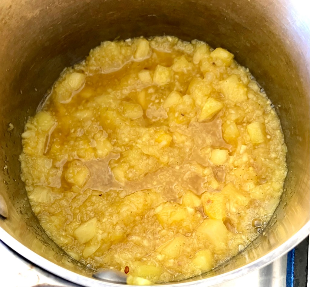 PINEAPPLE SAUCE – Follow the Blueberry Sauce recipe, but use 3 TBS brown sugar, add a pinch of allspice, and 1 tsp vanilla extract