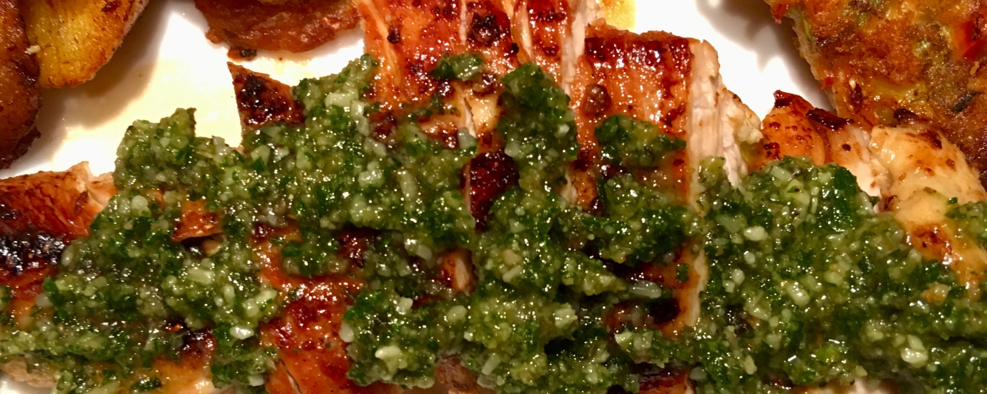 Our family was unmotivated to prepare the big bird this Thanksgiving, so I suggested my go-to recipe which is then topped with pesto and bread crumbs. It got raves it is to become a future tradition.