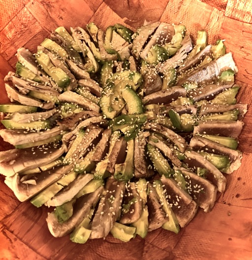 8. Arrange the tuna and avocado and spoon over with the sauce. Sometimes you can interweave the tuna and the avocado to make a stunning carousel for a special presentation