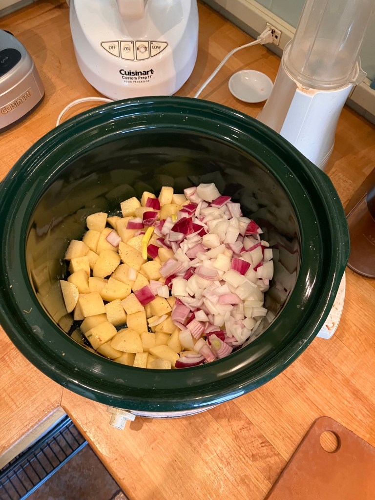 - potatoes – unpeeled, 4 large, Yukon or Red Bliss, 1/2” cubes