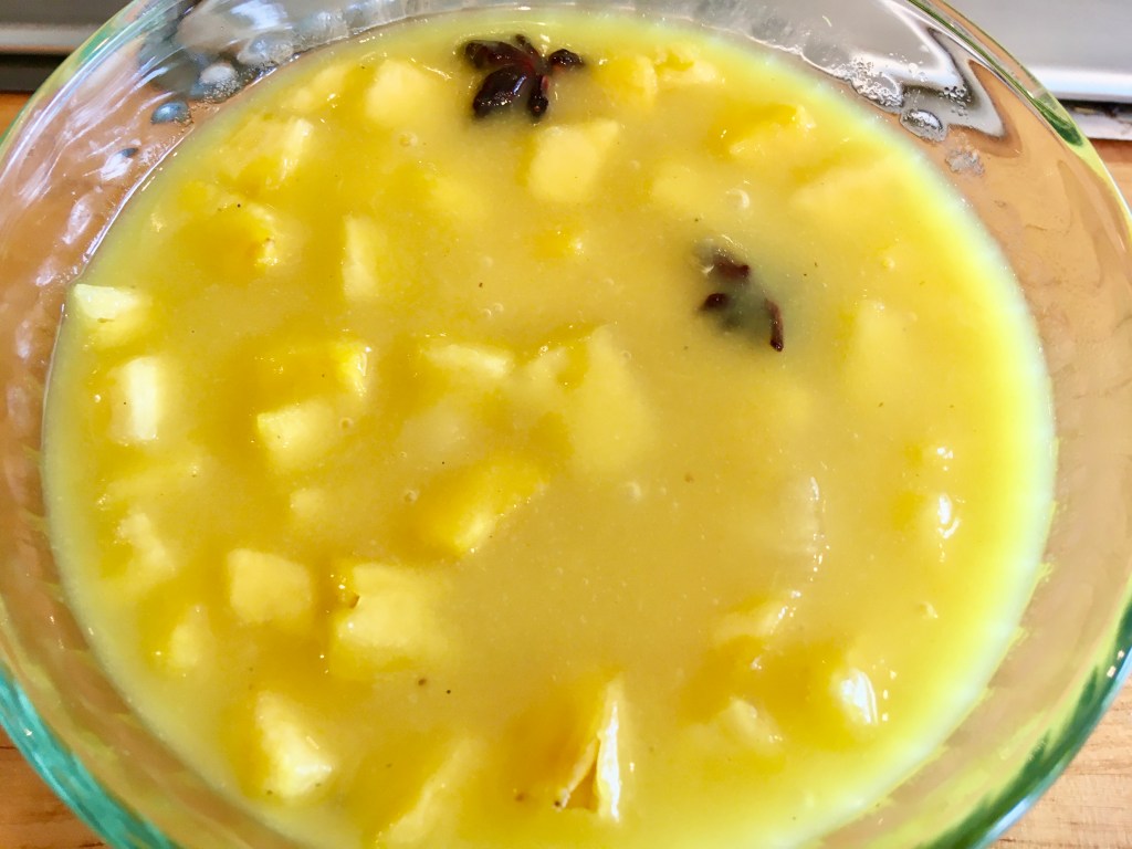 - pineapple puree or nectar – 1 1/2 cups