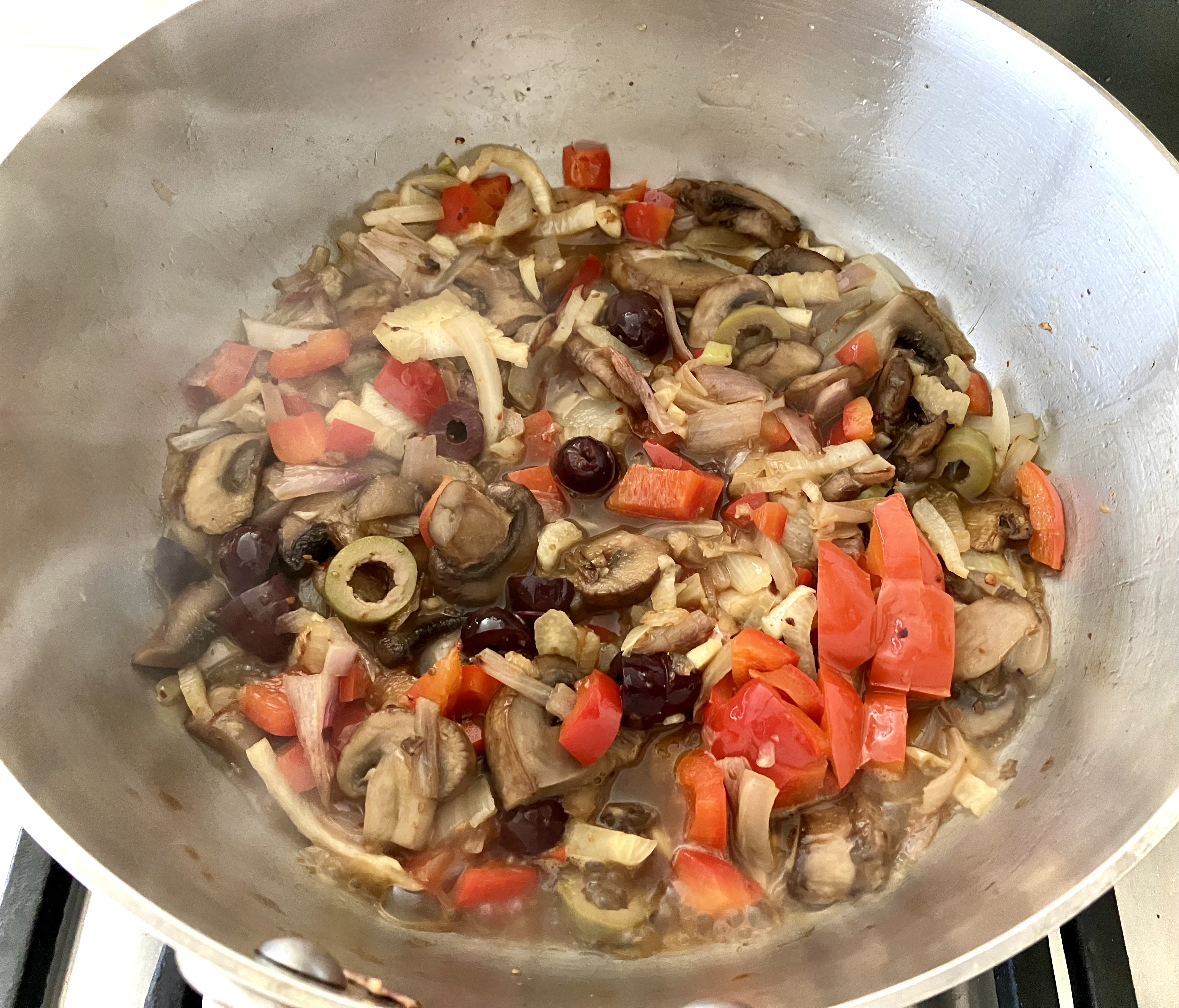 This go-around I spun it Puttanesca style by adding olives, red peppers, capers, and a tsp. anchovy paste