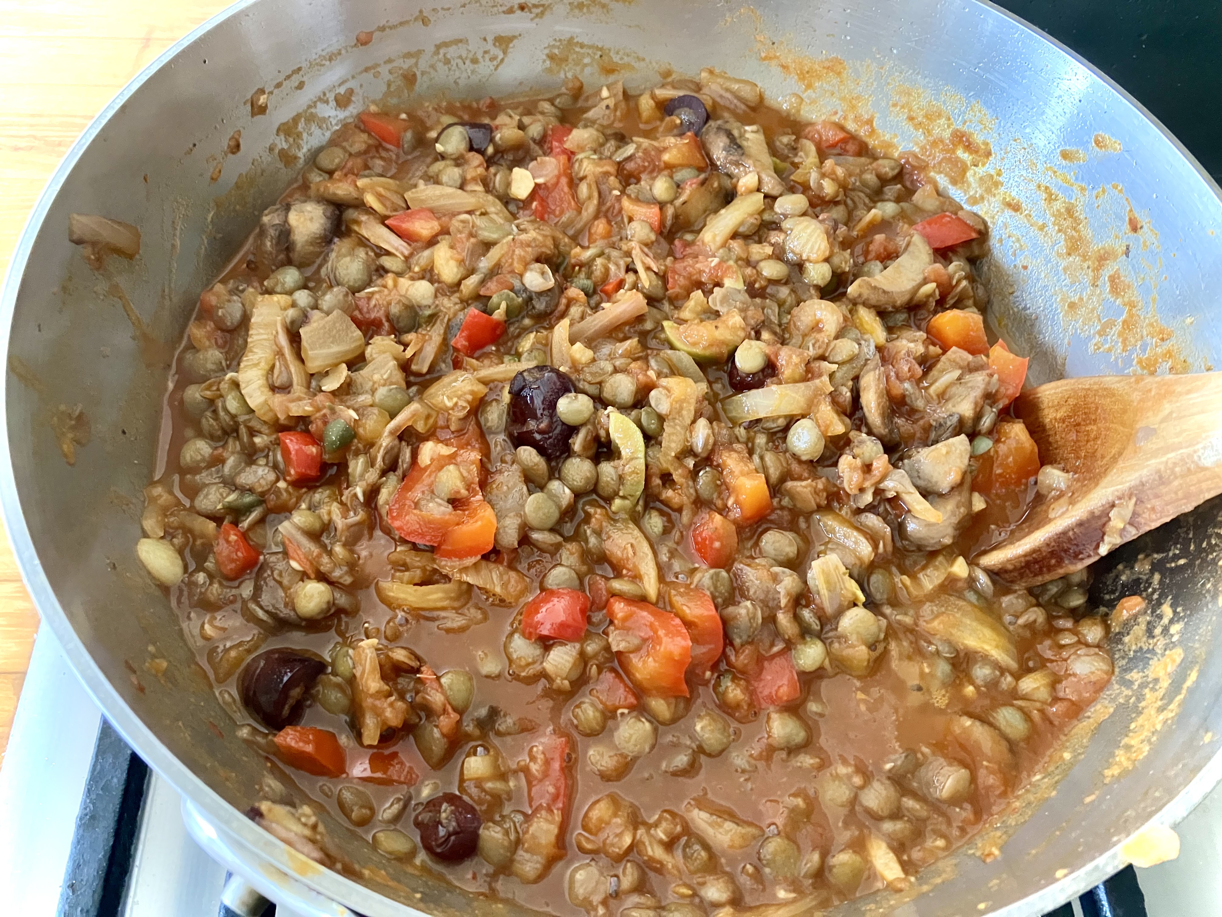 Although the ingredient list looks formative, the dish comes together quickly. Lentica freezes well.