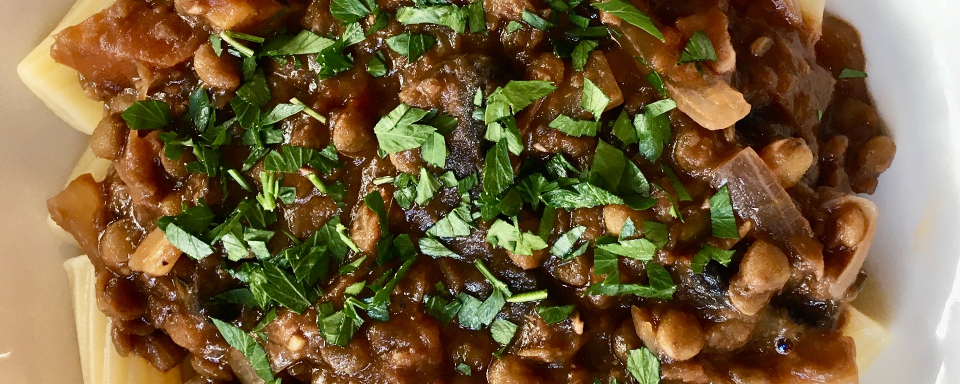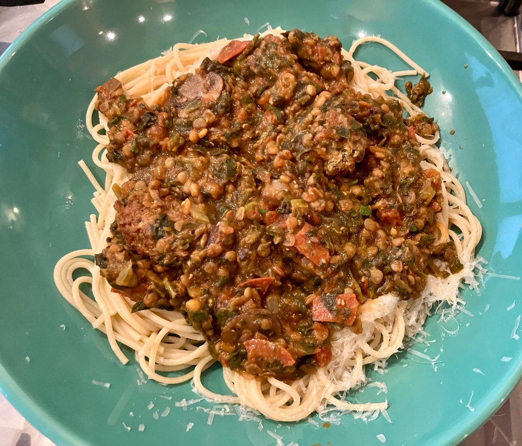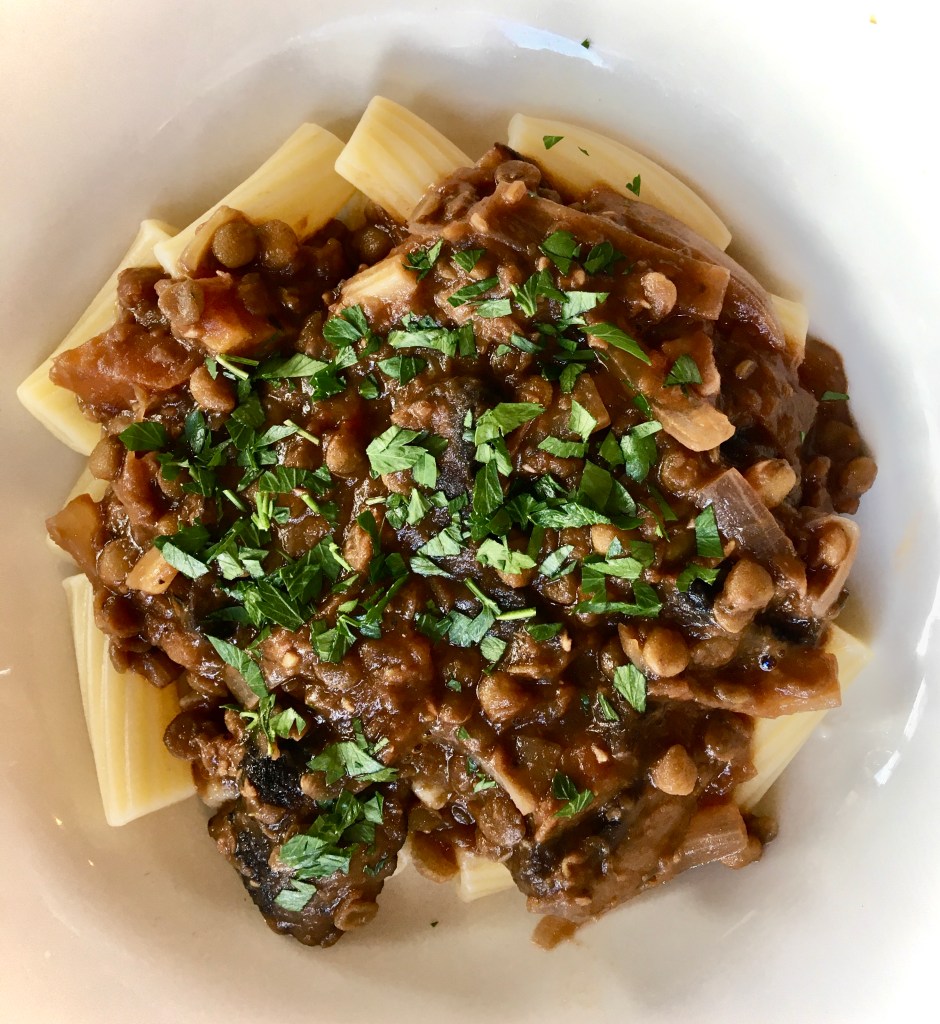 I’m excited to post this recipe I’ve been making for over a quarter century. If you are familiar with the Northern Italian bolognese sauce—a thick sauce of ground meats—you will find parallel grandeur in this vegetarian version.