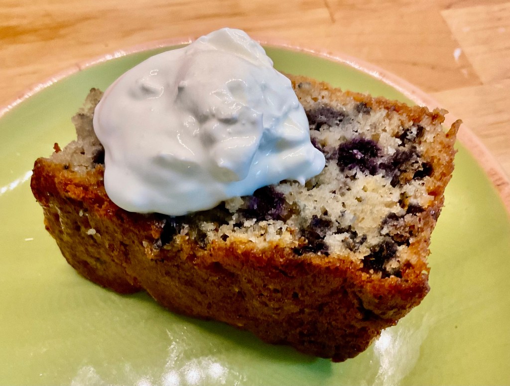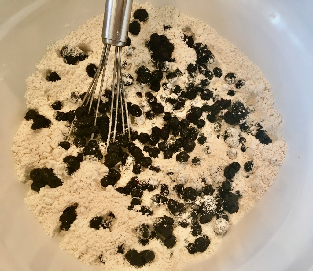 - Coat fresh or frozen berries in a TBS of flour and fold into the batter, if using dried berries skip this step