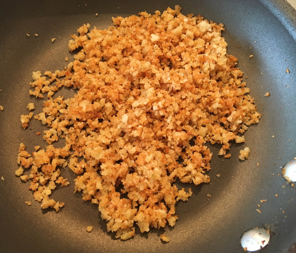 - In a medium skillet over medium heat, toast the breadcrumbs tossed with the olive oil