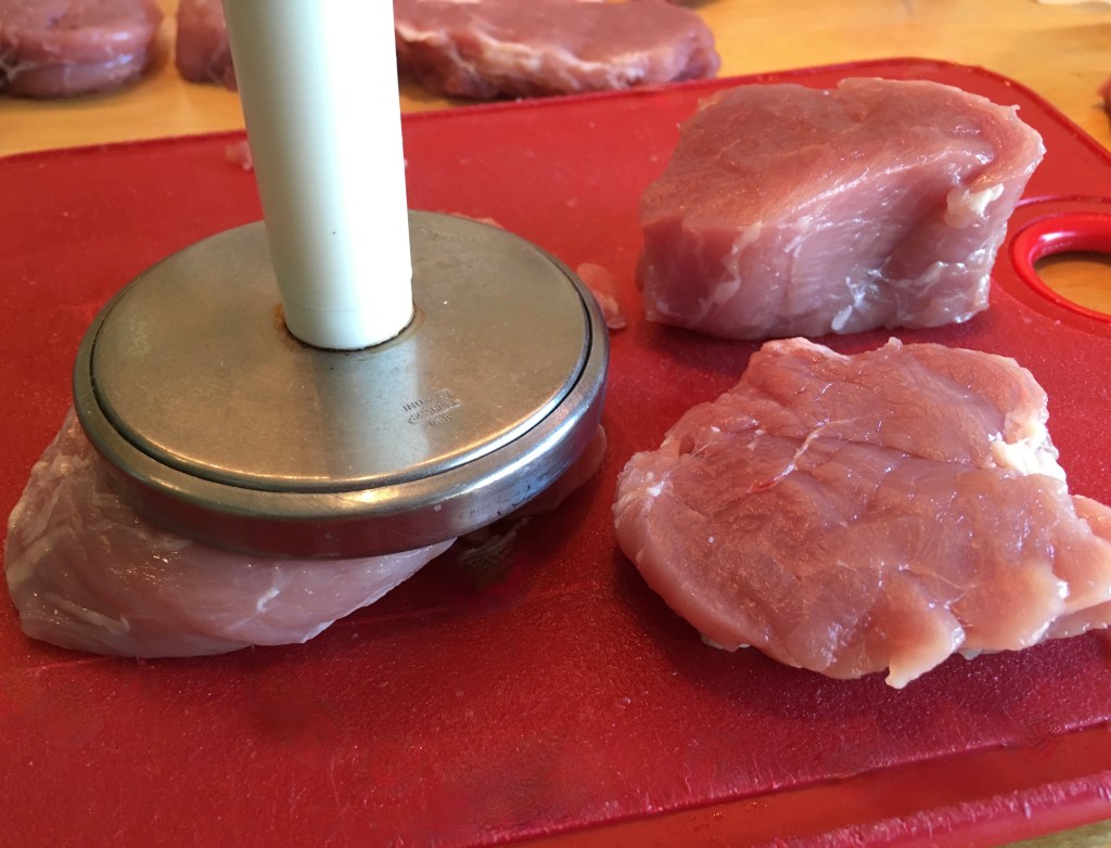 - pork – 2 tenderloins, 1 1/2 ” slices, pounded to 3/4″ thick
