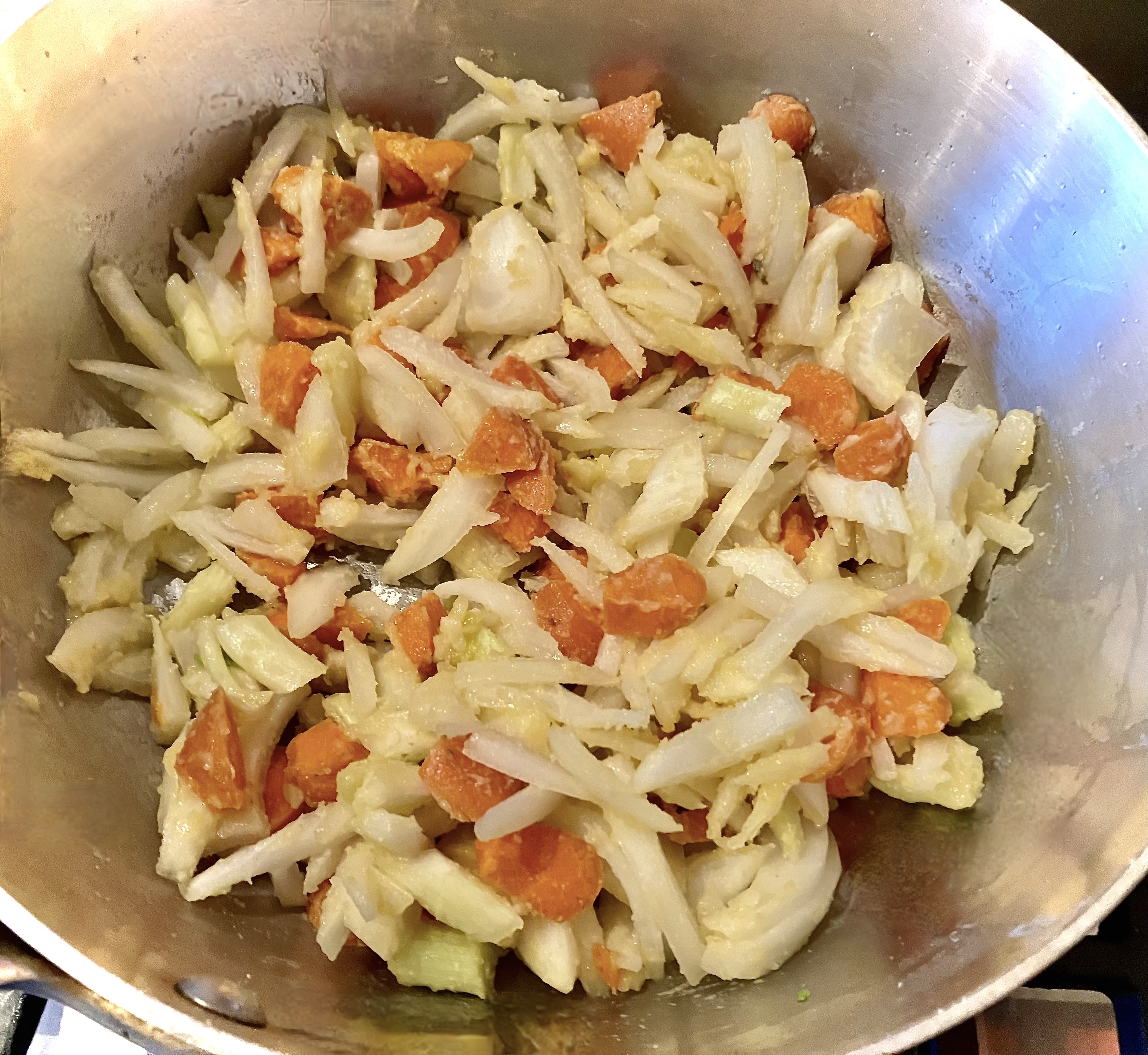 I prefer to slice soup veggies rather than dice for a more elegant and a different look-feel.