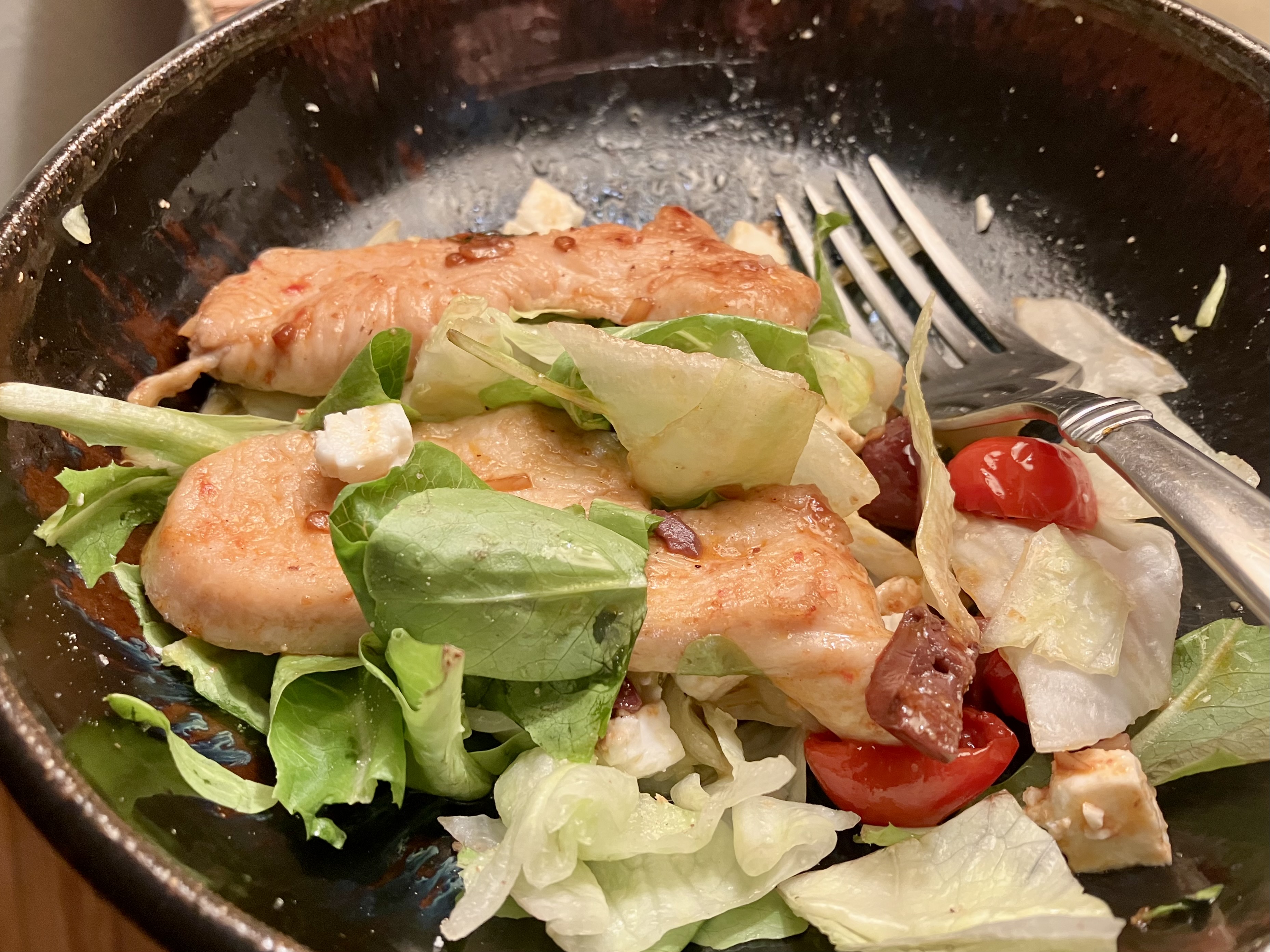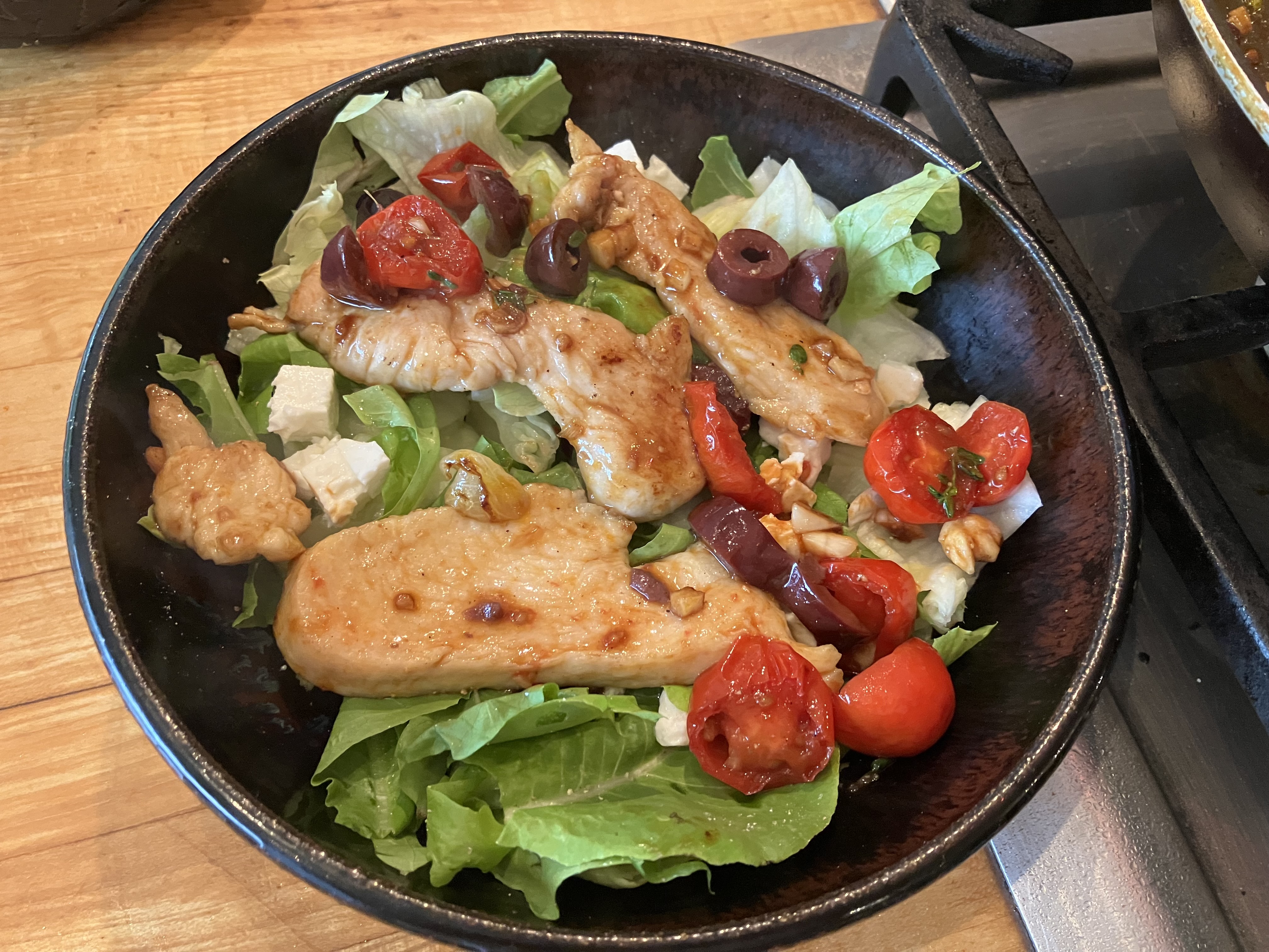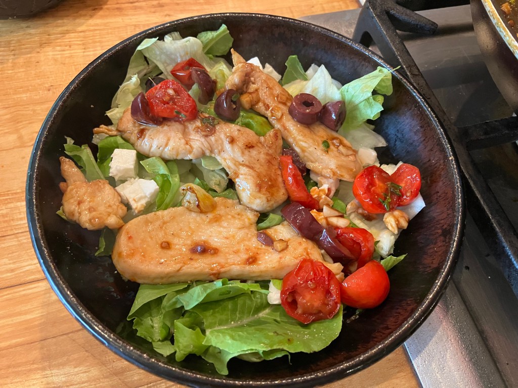 - Souvlaki Salad – Greek Chicken Atop Cold Salad; go here