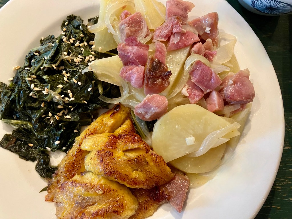 After the high holidays are long gone and there is still planned-over turkey or ham, I revert to my mom’s frugal and tasty dishes like: Scalloped Potatoes with Ham, Turkey Tetrazzini, or á la King.