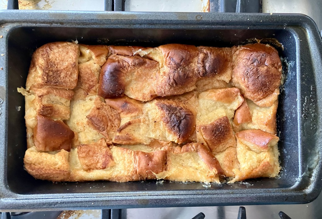 I tested this recipe from Mark Bittman in the New York Times and it’s perfection. Just enough balance and texture—a custard that melts into day-old bread.