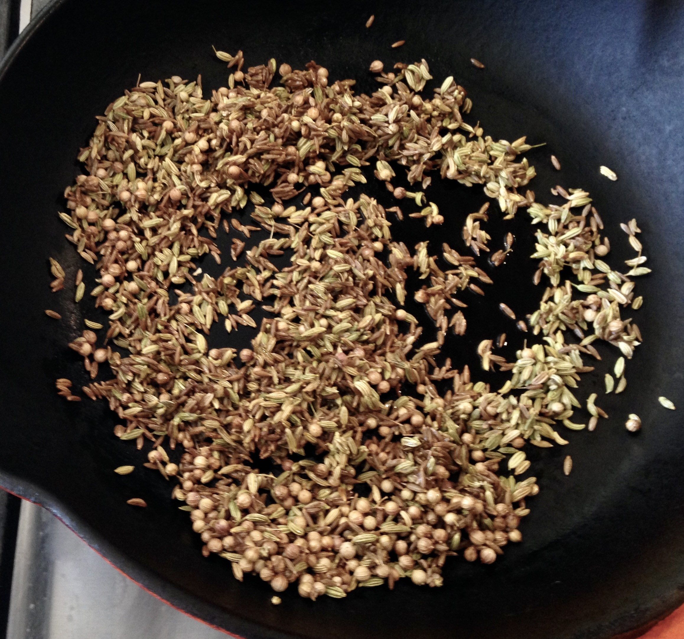 1. Sauté the Merguez spice blend in the olive oil for a minute or so. to bloom the spices.