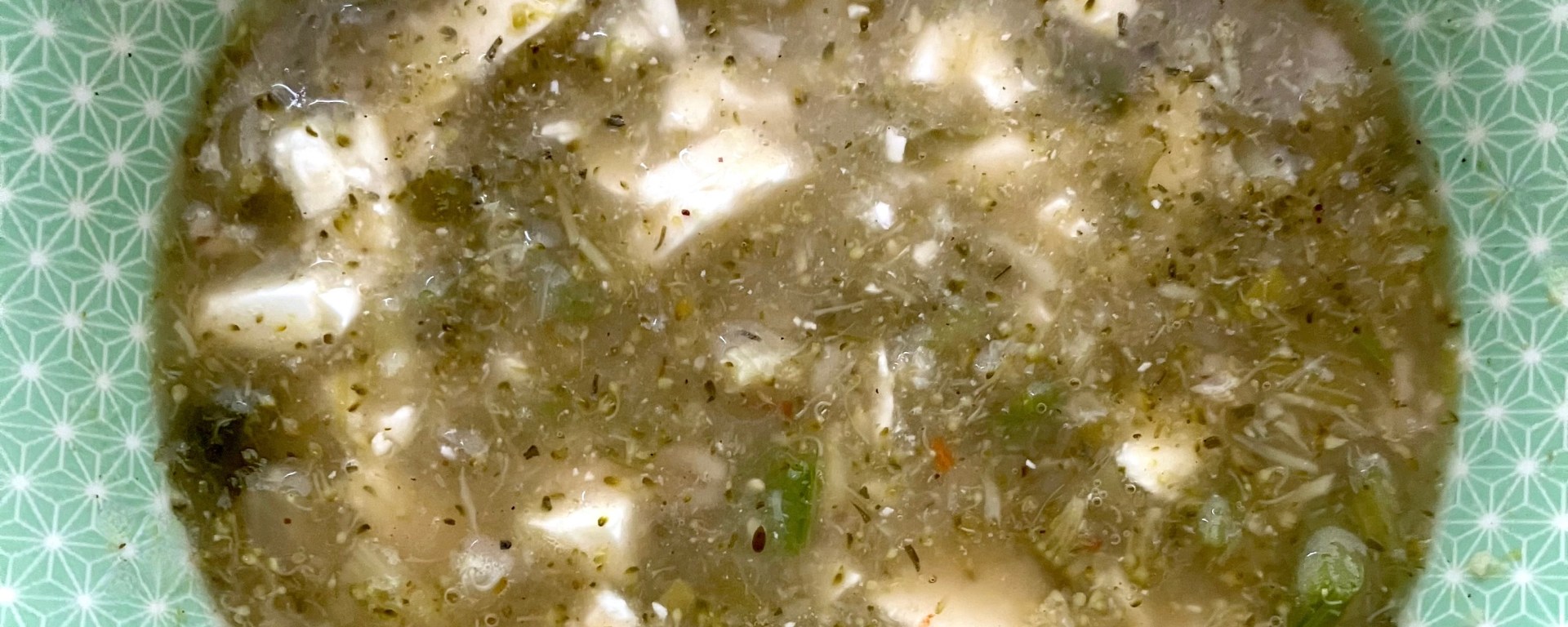 So I had a block of feta and a head of broccoli both going south on me; what’s to do? I scrolled through the sites to get an idea of how to shape a soup. I didn’t want a “cream of broccoli” soup, I wanted texture with a strong herbaceous note.
