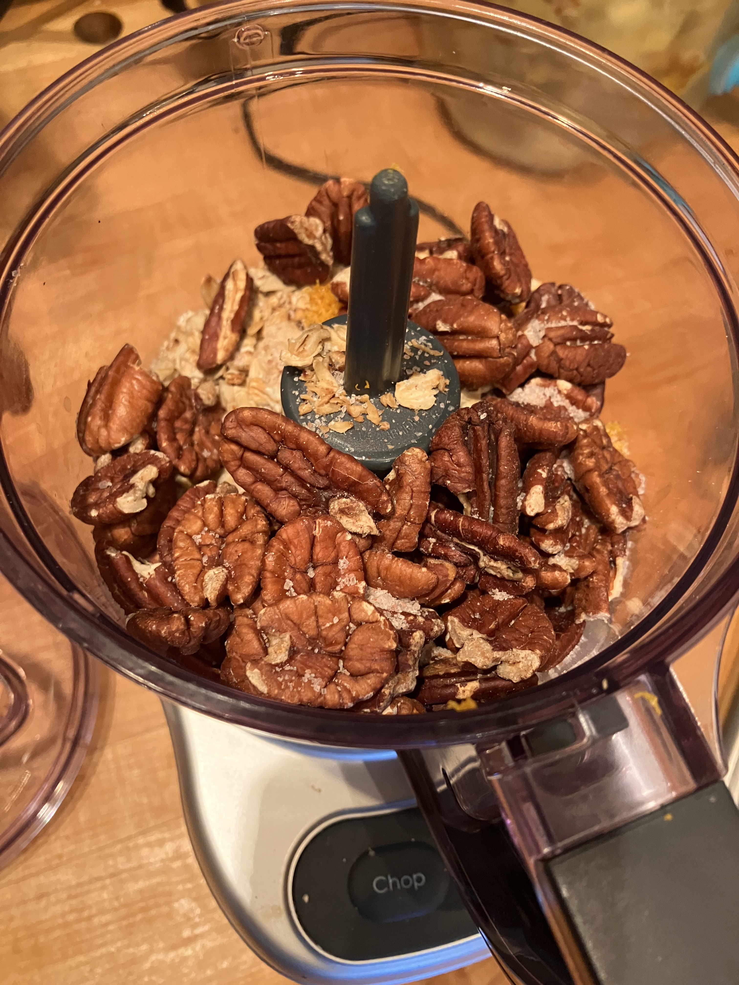 NUT CRUSTChoose pecans, walnuts or, almonds [toast for extra flavor I bake at 325º for 7-8 minutes]. I pan toast the oats tossed with 1 TBS of the oil until slightly browned—a few minutes