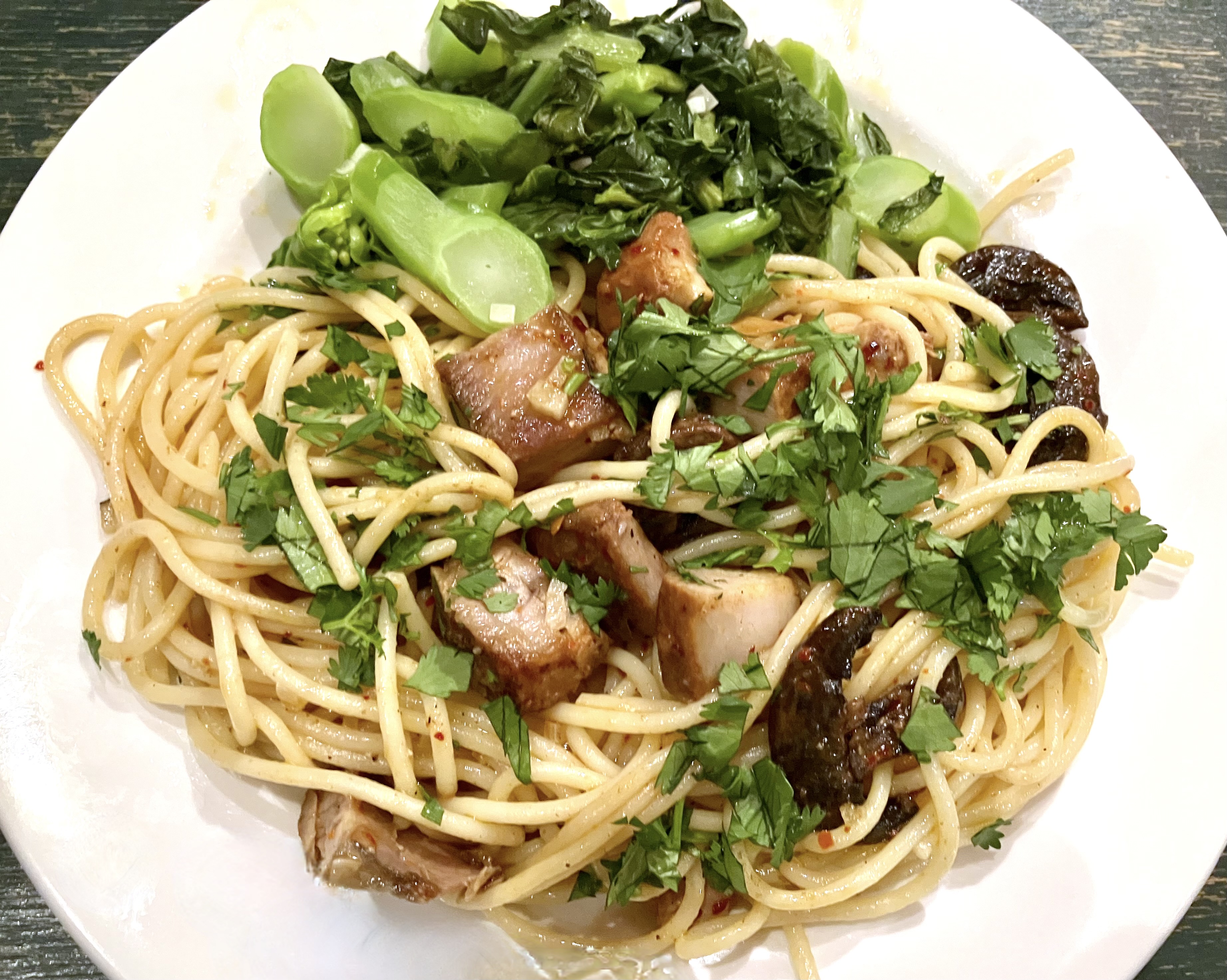 - pasta – 1 LB, spaghetti or macaroni, cooked al dente