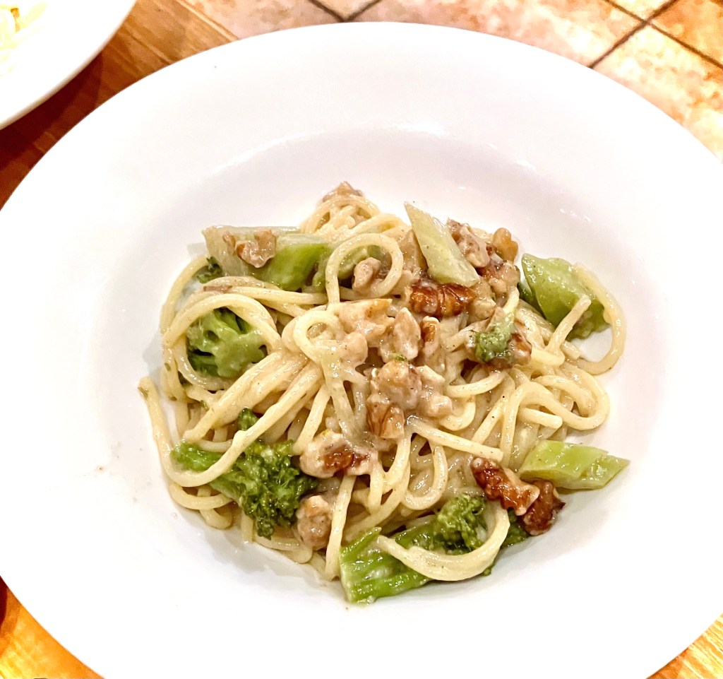 I’m so excited! I caught this NYTimes article about “Nothing Pasta.” It’s a wonderful way to create a variety of pasta dishes using bits and pieces from the pantry: protein, nuts, veggies, fats, cheese. I happened to have all the ingredients for this recipe. There are no suggested amounts to include—this is good—you can be more attentive to how the dish evolves.