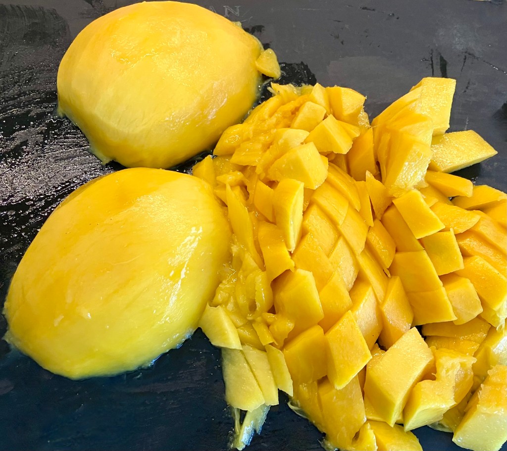 NOTE: This is an all mango froot chutney, but you need both green and ripe, frozen fruit* Freezing mango chunks produces a pulpy texture—perfect for this sauce