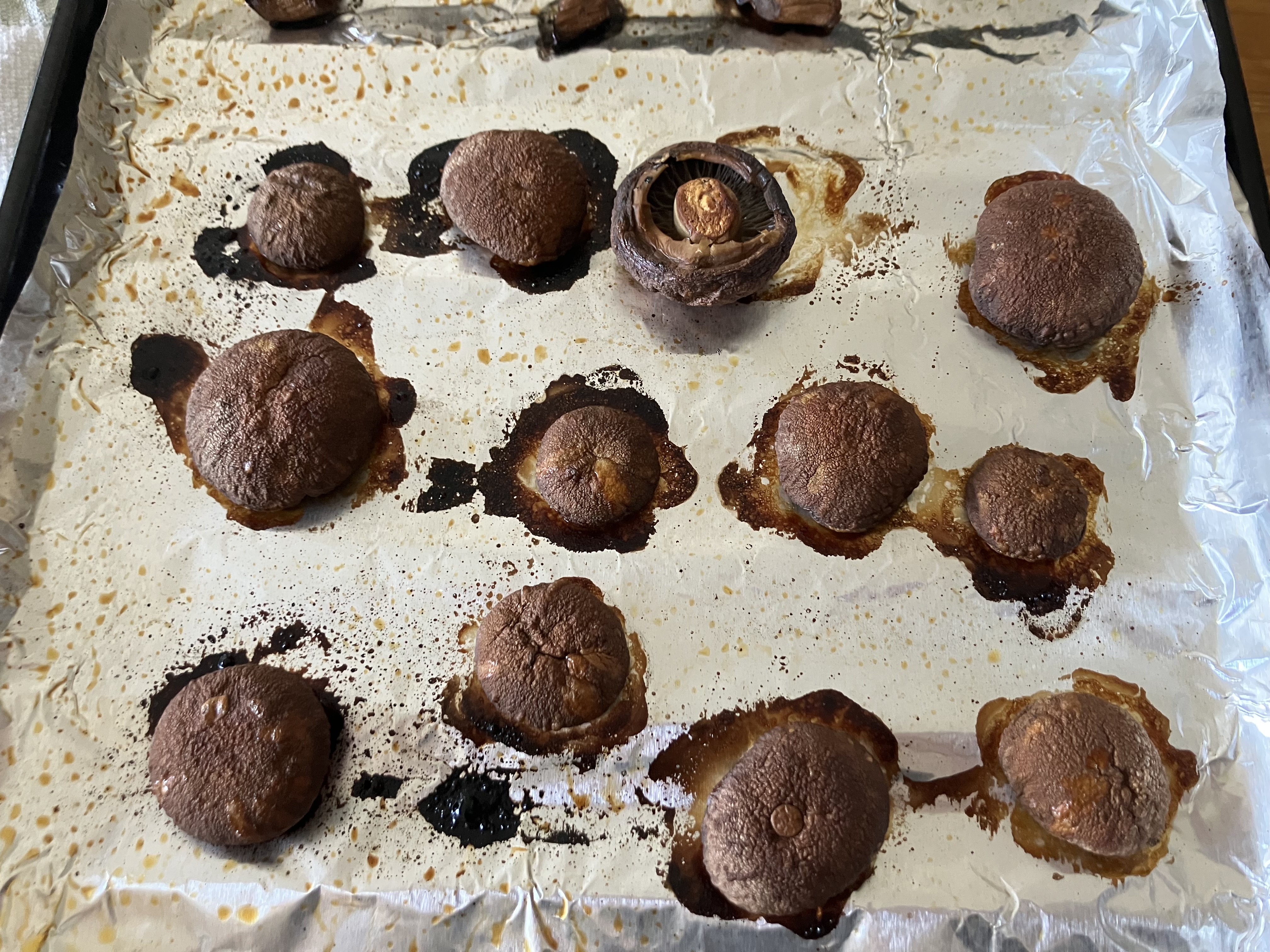 Bake for 45-75 minutes: until the caps are dark brown and wrinkled