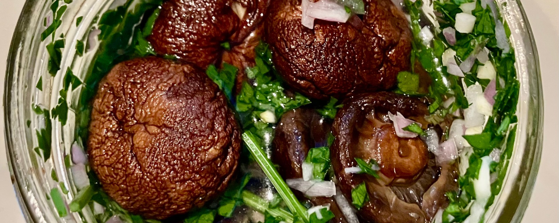 I wanted to convert common brown mushrooms into something both fermented and delectable. The texture and umami brine make it shine, kinda-like escargot!