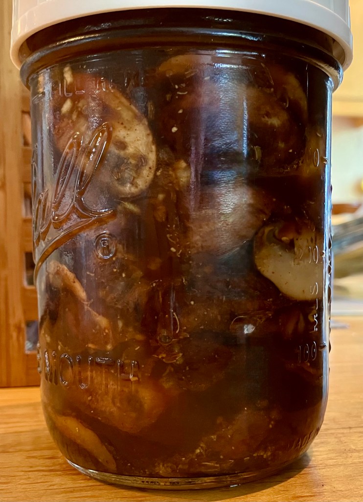 I serve by tossing corned creminis right out of the fridge into a hot vegetable stew, or soup, or fried rice to warm the mushrooms, but not destroy the live culture.