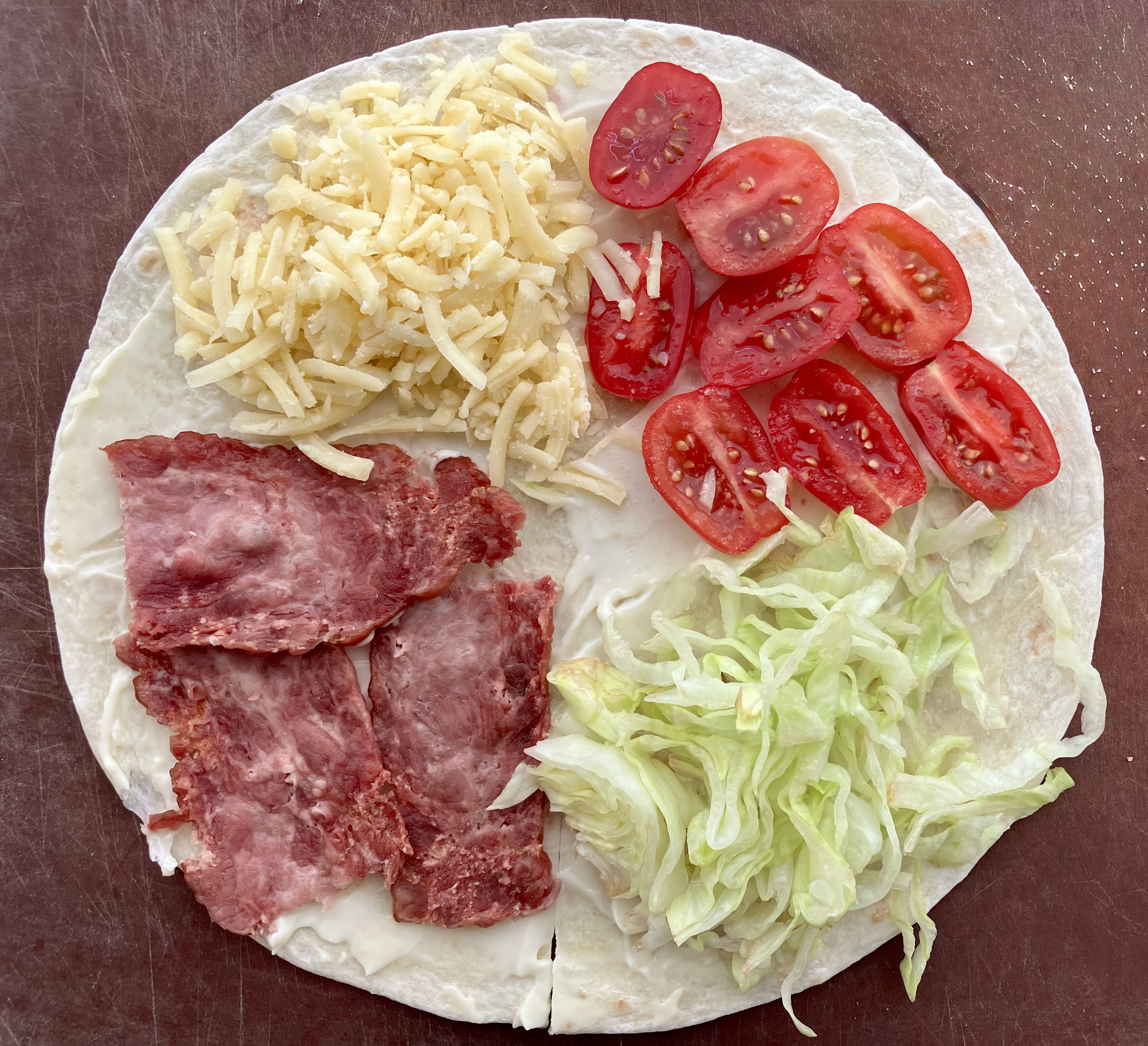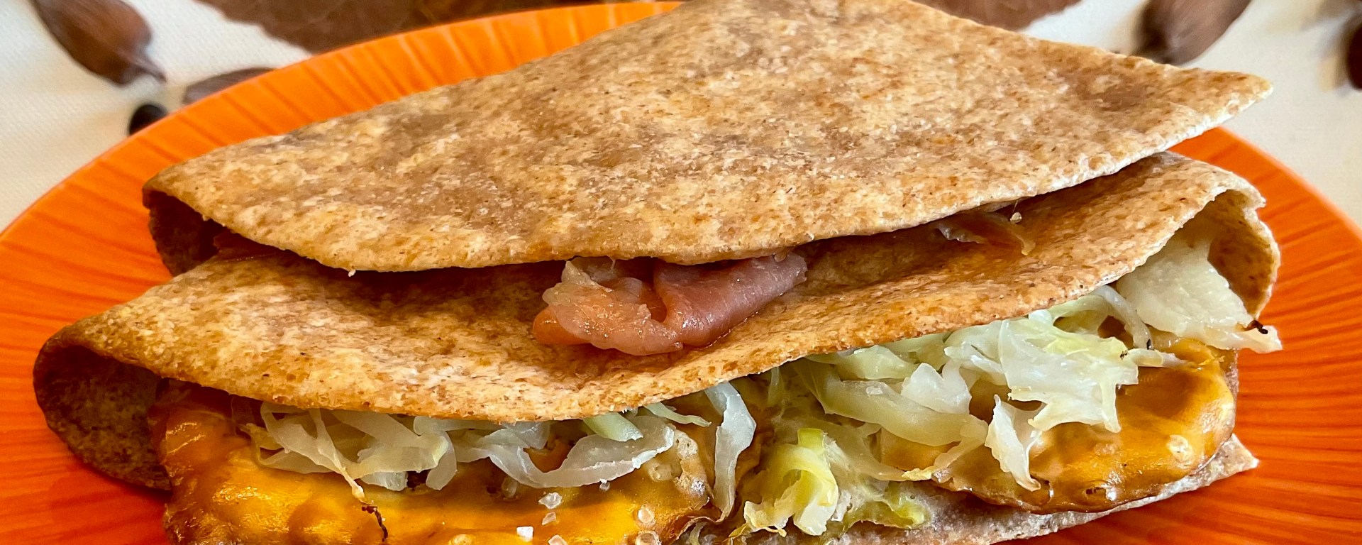 Note: You need to used cold cuts, or cooked protein in quesadillas, as only the tortilla is grilled