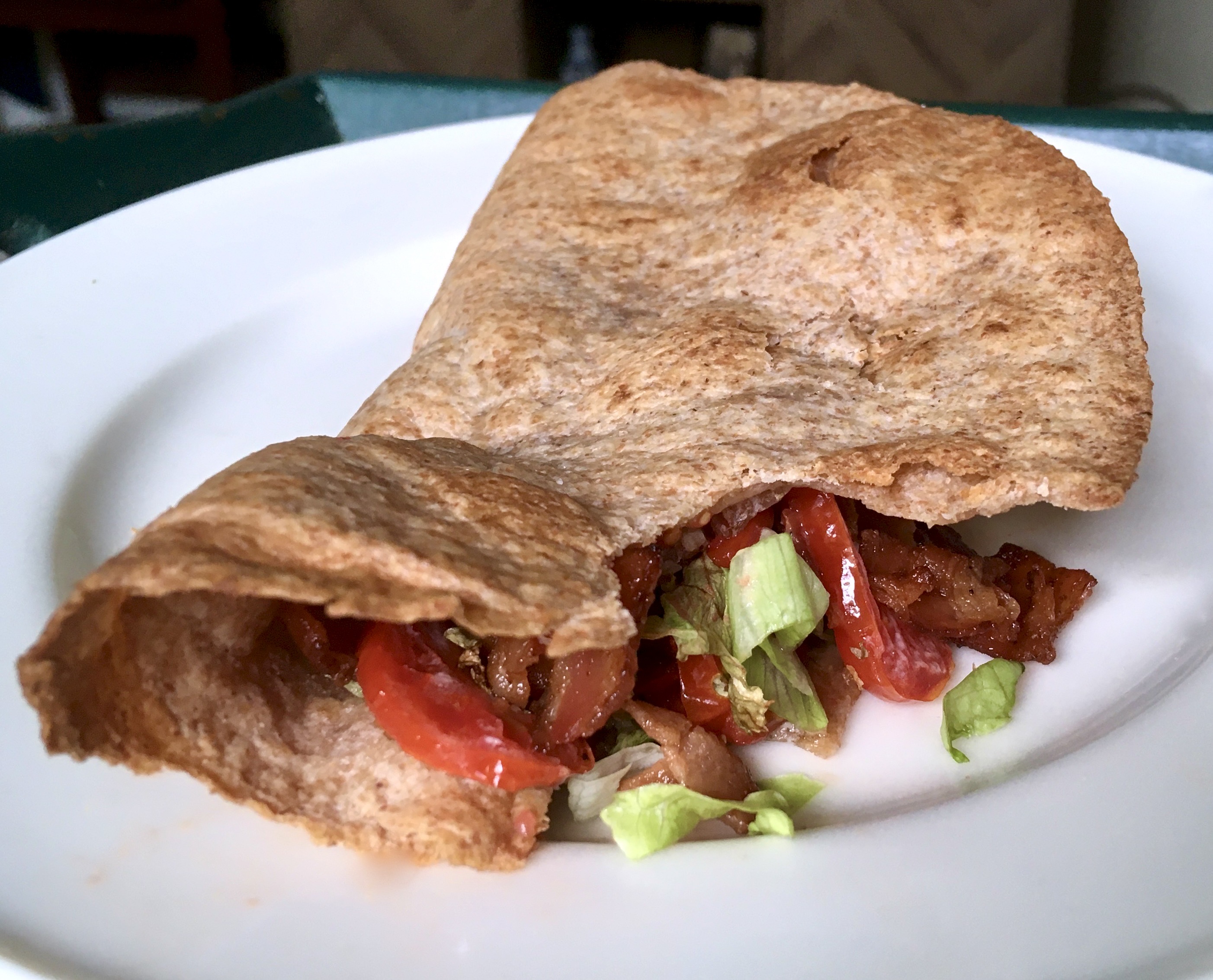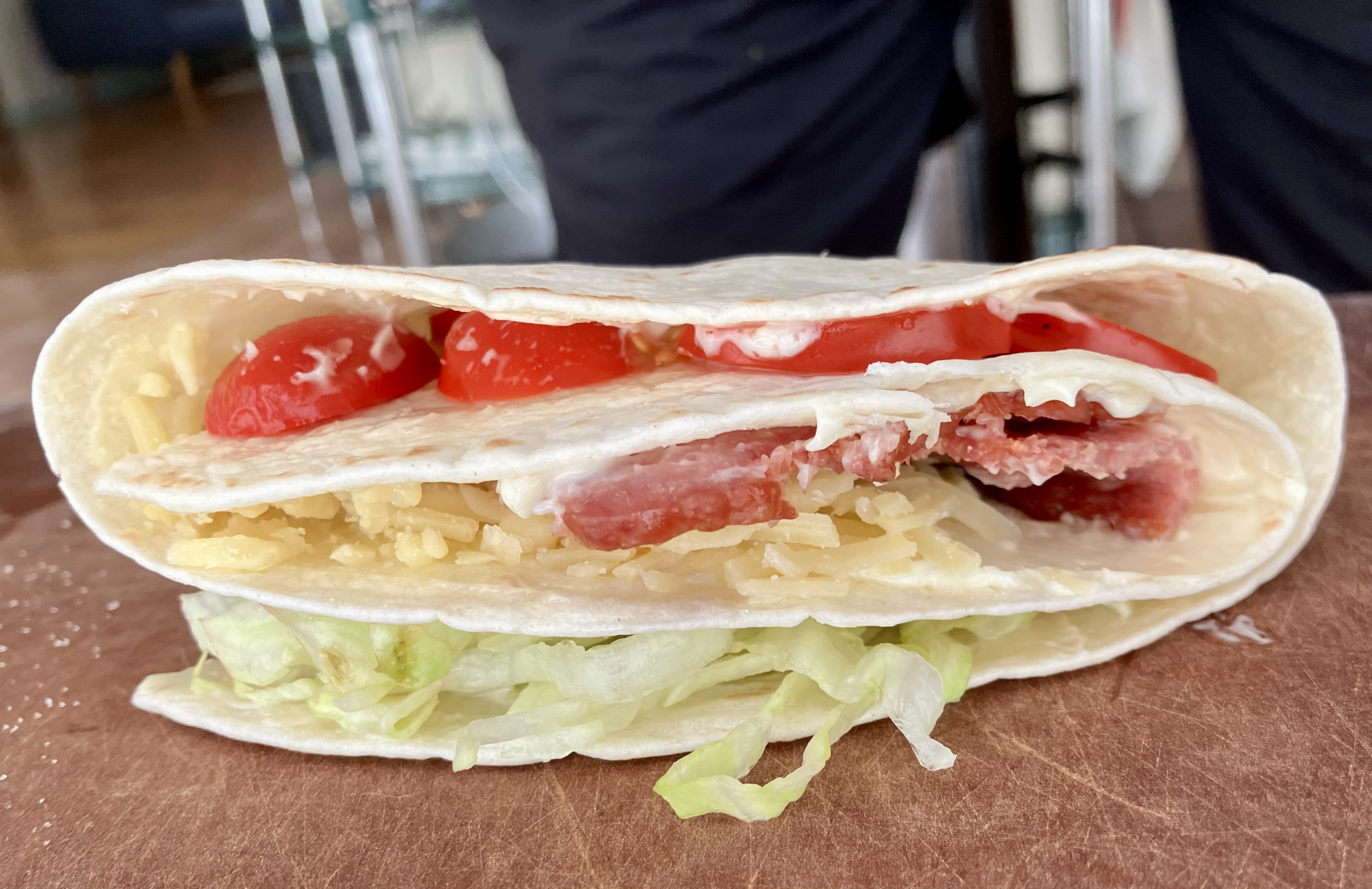 Left: B-L-T-C Right: Grilled Cheese, Green Salsa on a Green Tortilla