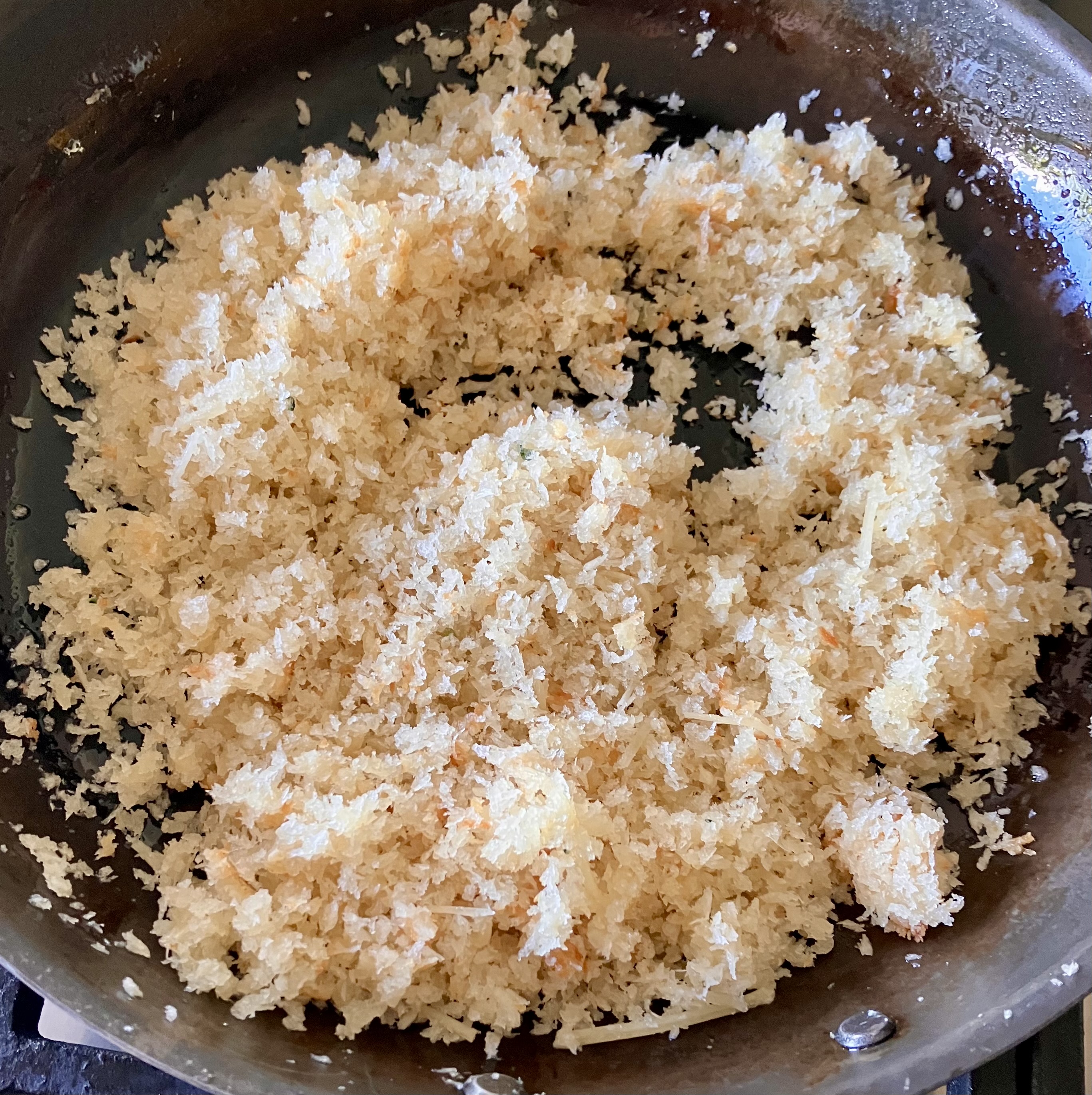 2. In a bowl combine the breadcrumb mixture and sauté until it takes on some color; 5-8 minutes
