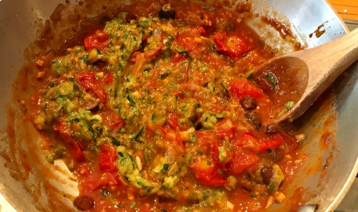 Charred eggplant braised in wine Continue reading Eggplant – Broiled & Braised