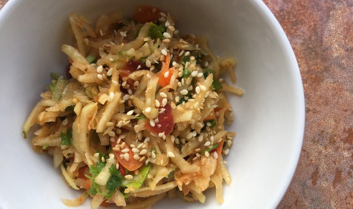 Southeast Asia’s Love Fest with Papaya I love to change out salads—from leafy greens, to coleslaw and now I’m really excited about green papaya salad. It’s soooo good! Great chewy texture, both complex and brightly dressed. It’s better the second … Continue reading Green Papaya Slaw